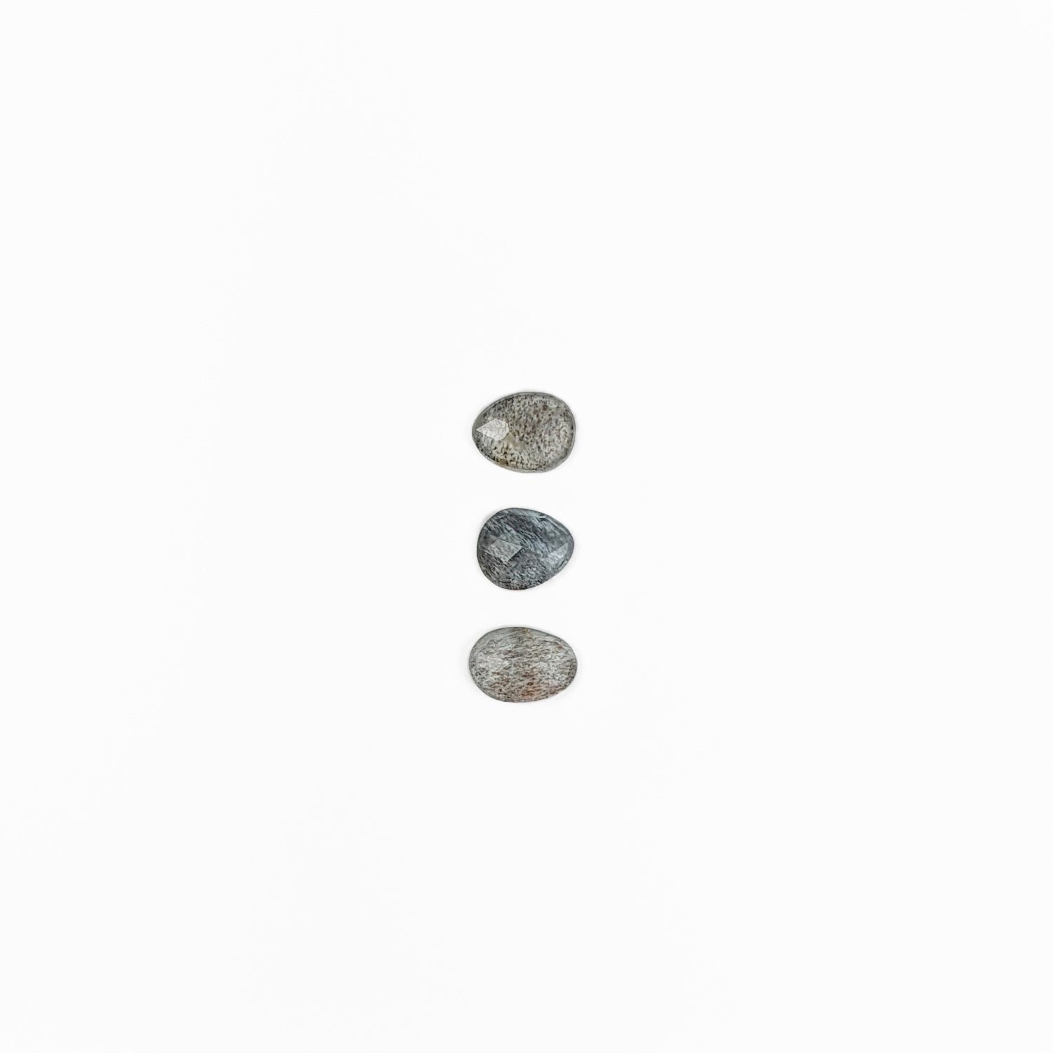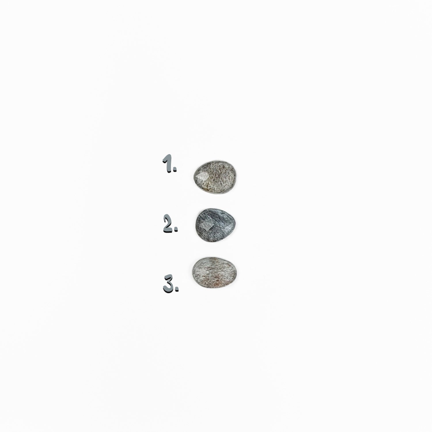 Chocolate and rust coloured inclusions mark these beautifully pale grey-blue Moss Aquamarine freeforms. The birthstone for March, this stone is associated with the zodiac signs of Pisces and Aquarius, and is also connected to Libra and Gemini. You will select one of the exact stones in this listing and have it created as a ring, with your loved one's ashes (or other materials by special request) fully protected beneath. You can have this design created in solid silver (fine + sterling), or mixed metal / solid gold by special request.